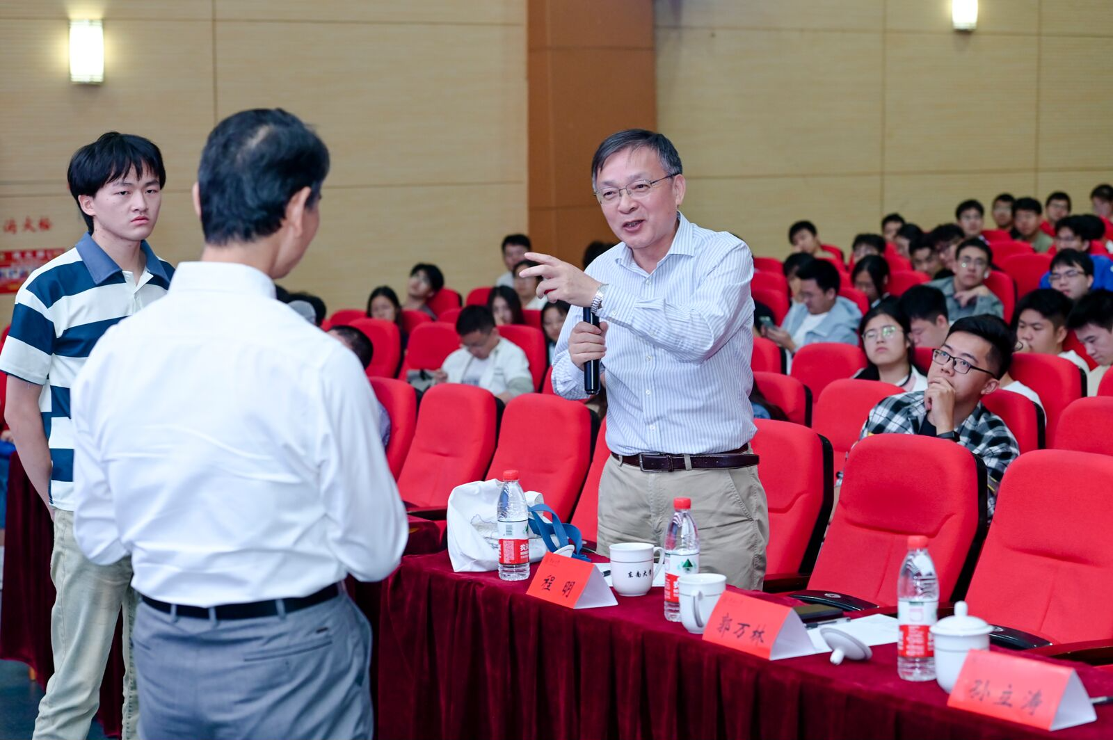 在交流提问环节,郭万林院士热情地回答了师生们提出的问题,解释了不同离子浓度溶液中的水伏发电现象,从水伏能源、水伏生态、水伏智能三个境界详细说明了水伏概念的由来,对水伏发电的发电稳定性、发电效率方面进行了展望。