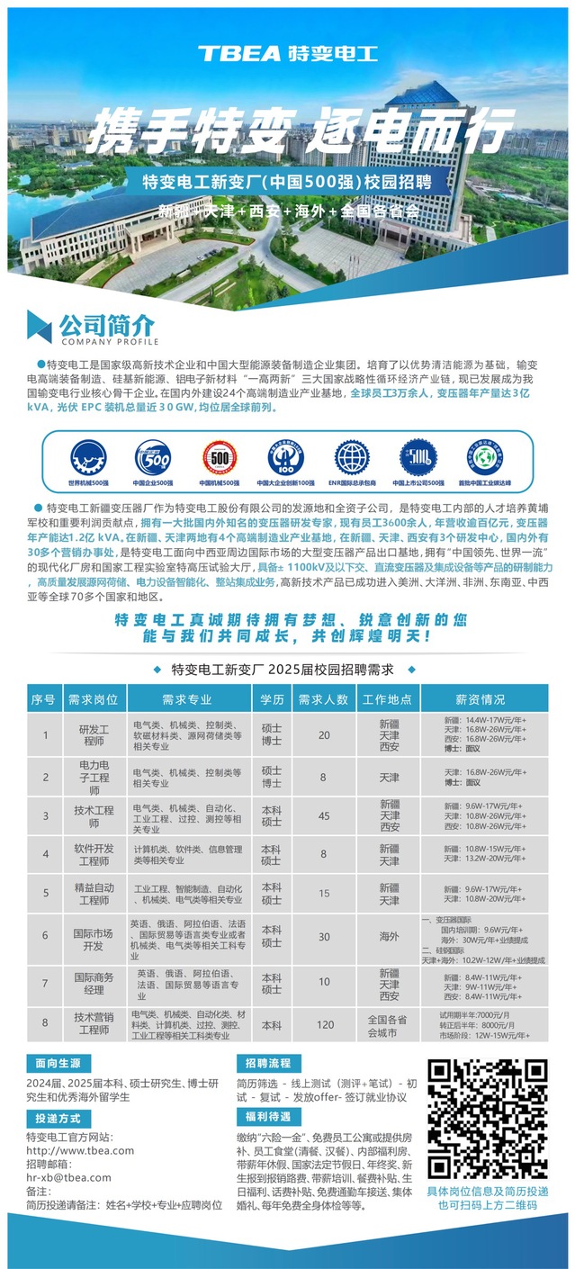 特变电工新变厂(中国500强)25届秋招开始啦
